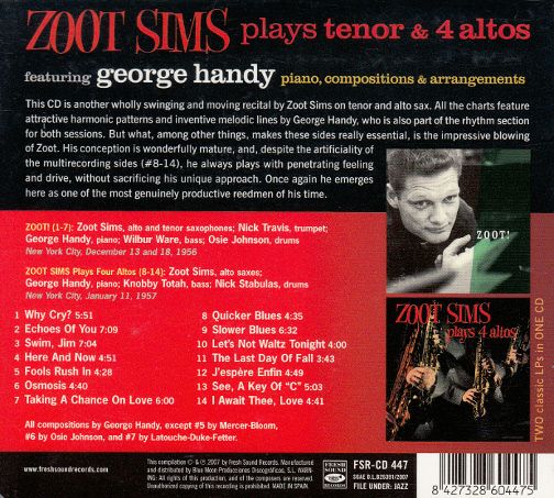 他の画像を見る Zoot Sims/ズート・シムズ Zoot Sims Plays Tenor&4 Altos CD 輸入盤 サックス・木管 試聴可能 名盤 1950年代 ¥ 2,650 税込 カートに入れる 欲しいものリストに登録する