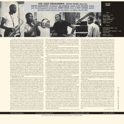 ウェイン・ヘンダーソン、ウィルトン・フェルダー、ジョー・サンプルの相次ぐ死去によって、伝説のグループになってしまったジャズ・クルセイダーズ(現在はスティックス・フーパーのみ生存)。70年代にクルセイダーズと名を改めてからのフュージョン路線でも人気を博しましたが、正統派ジャズ・ファンに好まれるのは、やはりジャズ・クルセイダーズ時代の演奏でしょう。本作は彼らのファースト・アルバムで、ハード・バップ~ファンキー・ジャズの王道をいく内容。テキサスで誕生し、ロサンゼルスで開花したジャズ・クルセイダーズの魅力を、LPでどうぞ。 / 全世界300枚完全限定